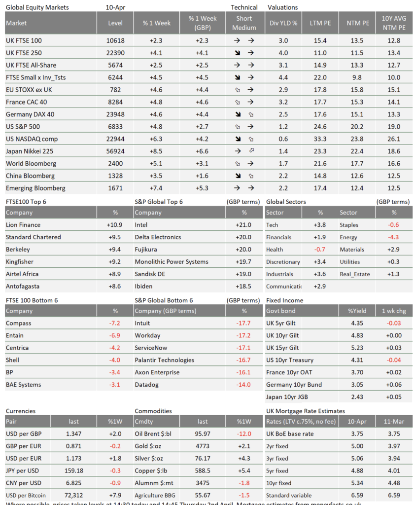 Markets burst upwards on Wednesday, as the US pulled back from the precipice and announced a ceasefire with Iran. Oil prices dropped over 15% while bonds and stock prices rallied on the hope that global supply chains might quickly return to normal.
