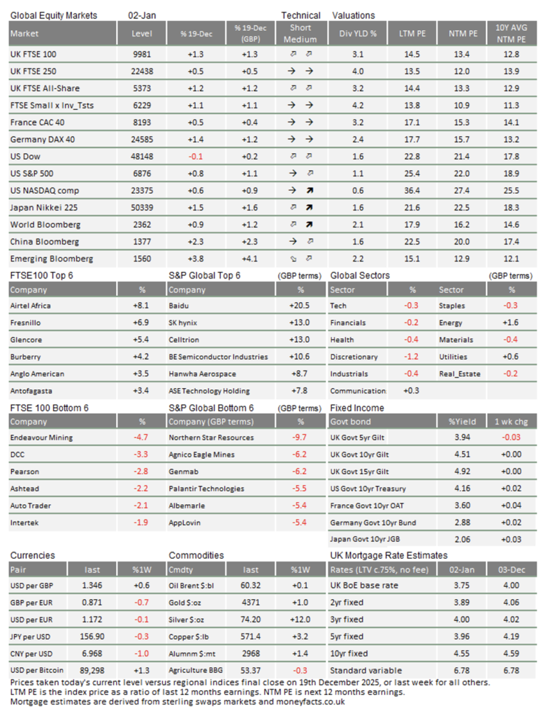 We have crossed from the old to the new year with a bit of cheer. While US equity markets have marked time, Europe’s broad market has hit a new high, and the FTSE 100 traded above 10,000 last week. China traded the first day of 2026 with a 2% gain.