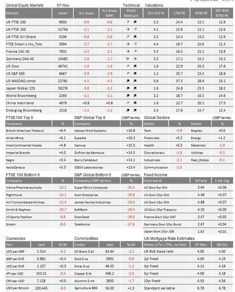 Rachel Reeves’ Tuesday pre-budget briefing was a big departure from previous budget protocols and has been followed by Friday’s leak of income tax rises of 2% in each band. And yet, unlike other major markets, UK stocks held up fairly well (at least until Friday). Government bond yields fell too. This is partly down to a weaker sterling last week, which makes our markets more attractive to international investors and our large caps’ overseas earnings more valuable. Sterling softness will also help British exporters. Previously, our currency had gained against global peers for most of 2025, which sounds like a good thing but can weigh on domestic producers. For UK investors, meanwhile, sterling’s fall this week also took the edge off foreign equity weakness.
