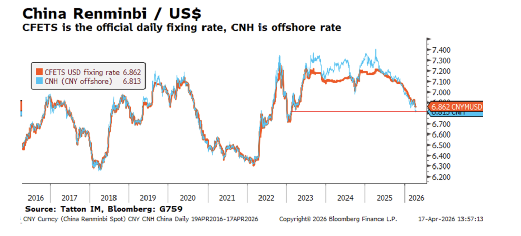 Given strong US growth, it is slightly odd that the dollar fell back this week. Strangely enough, the strongest currency has been China’s renminbi – climbing to a three-year high against the dollar – despite weak domestic growth and a sluggish equity market. The Chinese government has been guiding its currency stronger for a while now, and the Iran war has not knocked that trend.