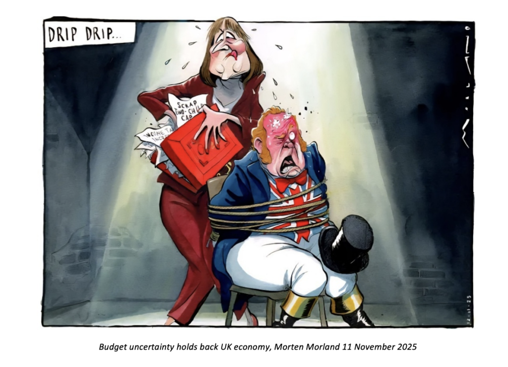 Markets seem to be looking through the current malaise to better times ahead, although this week’s budget shifts may have worsened the situation. Government bonds barely reacted to the disappointing growth data, while the FTSE 100 is still among the world’s best performing stock markets year-to-date. Global investors have been a strong support and seem to think recent weakness is a blip. We still suspect they are right.