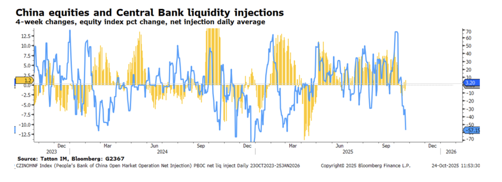 China has been spending to support its ailing economy for over a year and, while measures have been small, they add up. One of these has been a significant injection of liquidity. While growth languished, liquidity boosted its stock market. Now, the cheapening of the cost of capital appears to be helping the economy. At 1.1%, the Q3 GDP annualised growth data was stronger than expected and Beijing is now almost certain to exceed its 5% growth target for 2025. With the third Plenum now finished, the government may reduce some stimuli. Market-based measures are the most likely candidates.